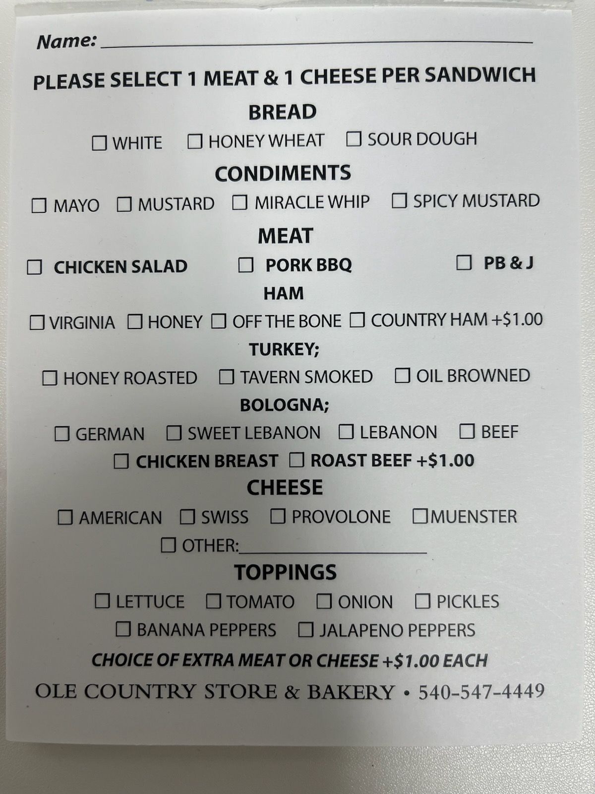 Whether you want to buy quality meats and cheeses or want to taste sandwiches and soups, The Ole Country Store & Bakery's deli is the place to visit! We pride ourselves on our sandwiches made to order with freshly sliced meat and housemade bread. From October to March we serve hot soup made right here in our own kitchen!