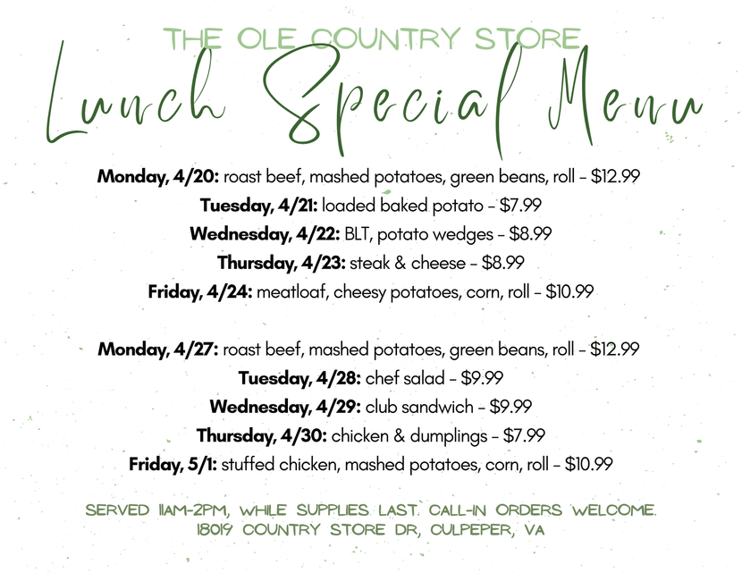 Whether you're on your lunch break, bringing the whole family for a picnic, or just driving by, this is the place to get a great meal that tastes homemade! Our made-to-order deli and breakfast sandwiches have been voted the best in our area for the last 5 years running, and our lunch specials are prepared in-house Monday-Friday. Soups, also made fresh in-house, are generally served October-March. As an added bonus, enjoy the view over Lake Culpeper